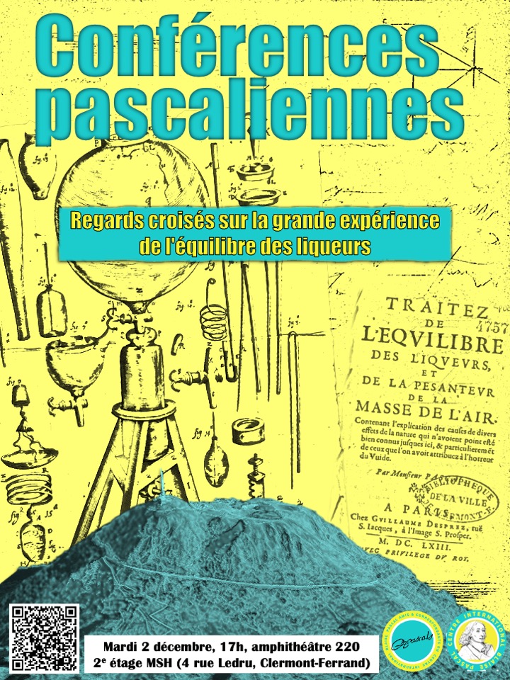Le Mardi 2 Décembre à 17h, venez assister aux Conférences Pascaliennes : "Regards croisés sur la grande expérience de l'équilibre des liqueurs" animées par Vincens Morenas (LPCA-UCA) et Patrick Fournier (CHEC-UCA).