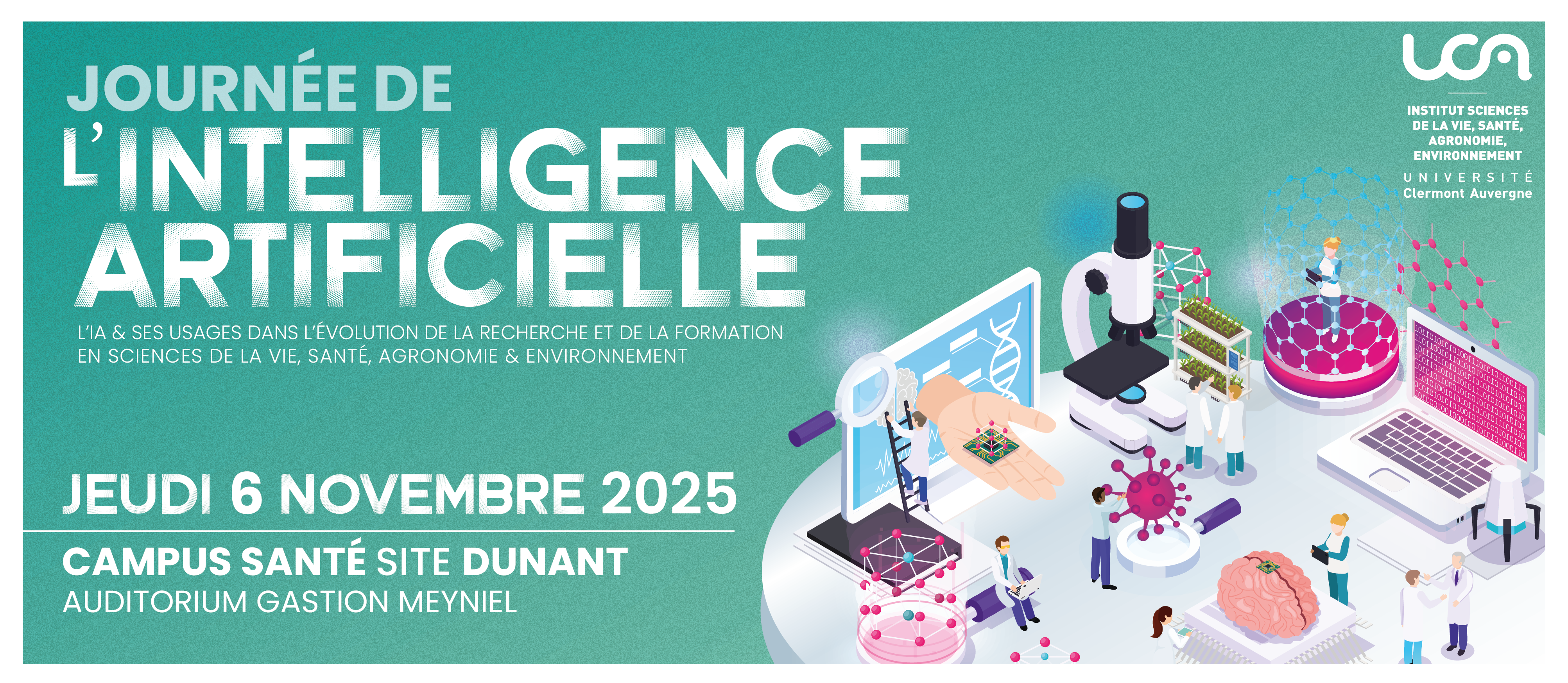 À travers conférences, flashtalks, table ronde et quizz, cet événement mettra en lumière les applications concrètes de l’IA dans les sciences de la vie, la santé, l’agronomie et l’environnement. Une occasion enrichissante pour mieux comprendre le rôle de l’intelligence artificielle dans la recherche et la formation de demain.