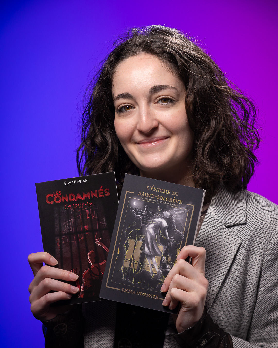 Emma Hoffner est autrice de thrillers et étudiante en parcours D2E (Diplôme Étudiant-Entrepreneur) avec Clermont Auvergne Pépite. Elle anime des ateliers d’écriture créatifs pour les jeunes avec son projet « En Quête de Plume ».