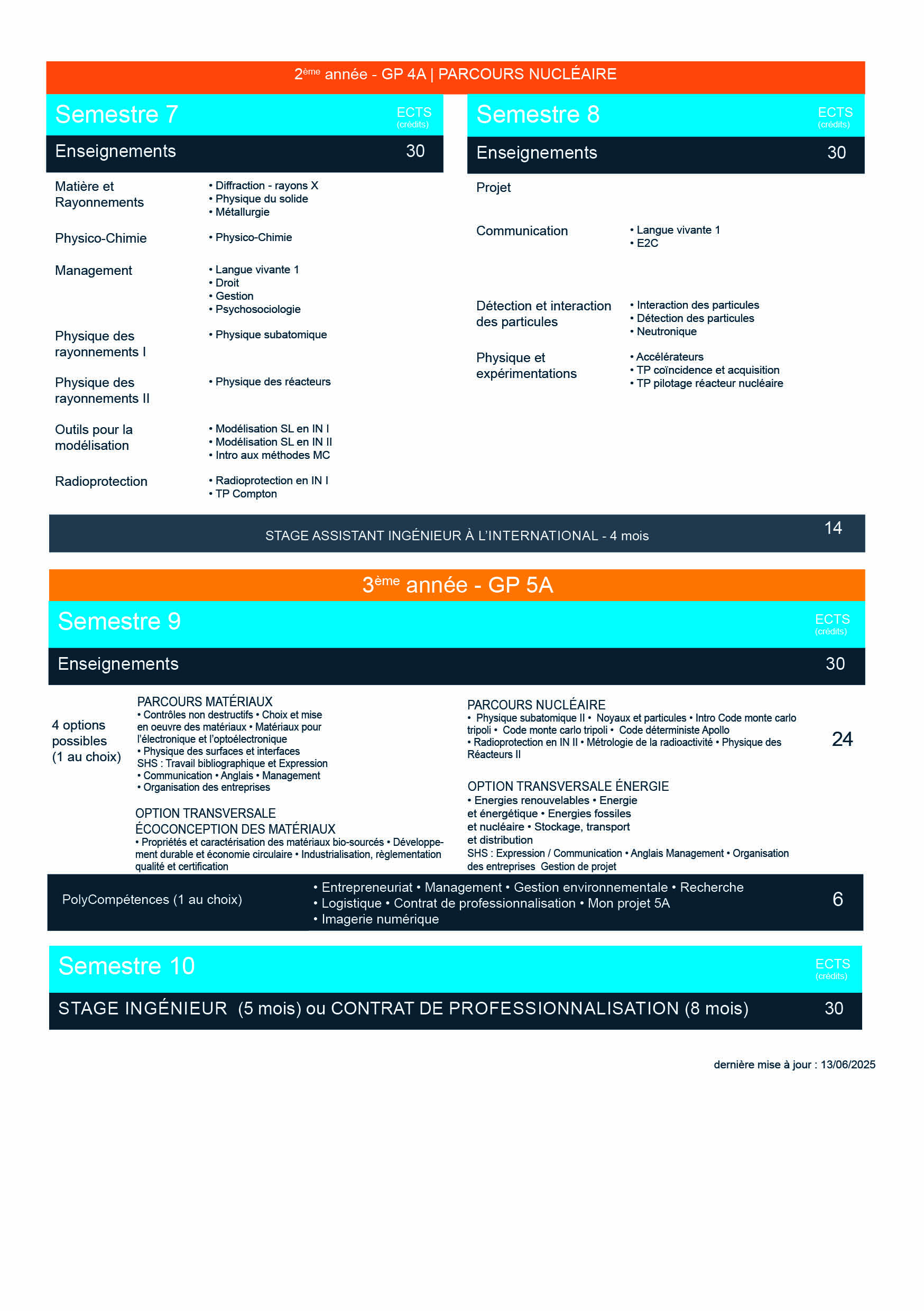 La création d’un parcours Nucléaire au sein du département Génie Physique en 4A et 5A en septembre 2025 s’effectue en appui sur le Master Ingénierie Nucléaire PTR-IPM de l’Institut des Sciences de l’UCA (EUPI), afin de répondre aux enjeux de la relance du nucléaire en France.