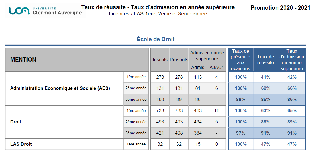 - Taux de réussite en L1 Droit - Année 2023/24