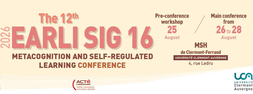 Cet événement est organisé par le laboratoire ACTé (Université Clermont-Auvergne) dans le cadre du Special Interest Group (SIG) 16 de l’European Association for Research on Learning and Instruction (EARLI). Le colloque porte sur la métacognition et l’apprentissage autorégulé à tous les âges et dans différents contextes.