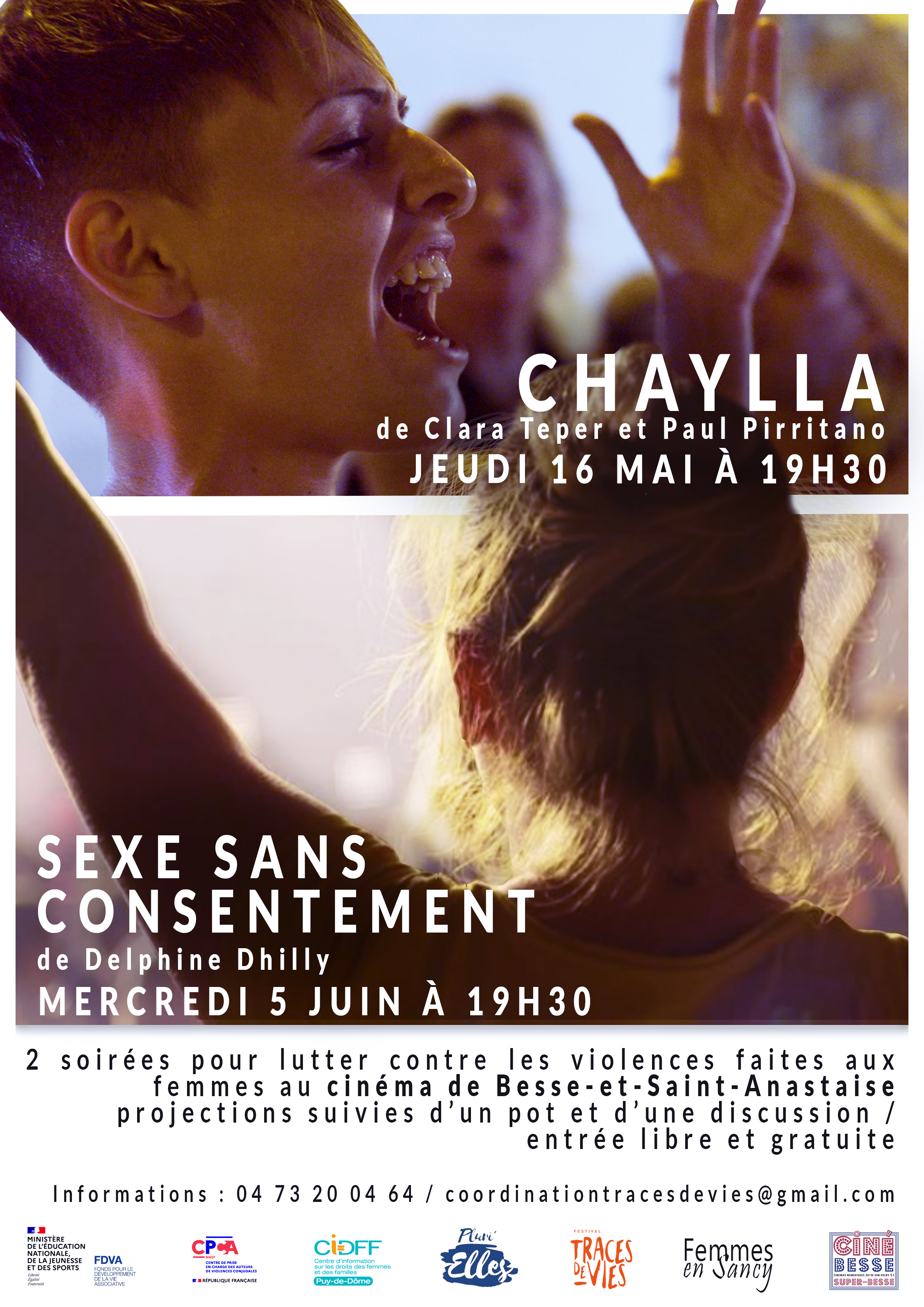 Afin de prévenir les violences dans le couple en ruralité, le CPCA organise avec le CDIFF en partenariat avec l’association « Traces de Vies » , deux évènements à Besse Saint Anastaise : 2 ciné-discussion :