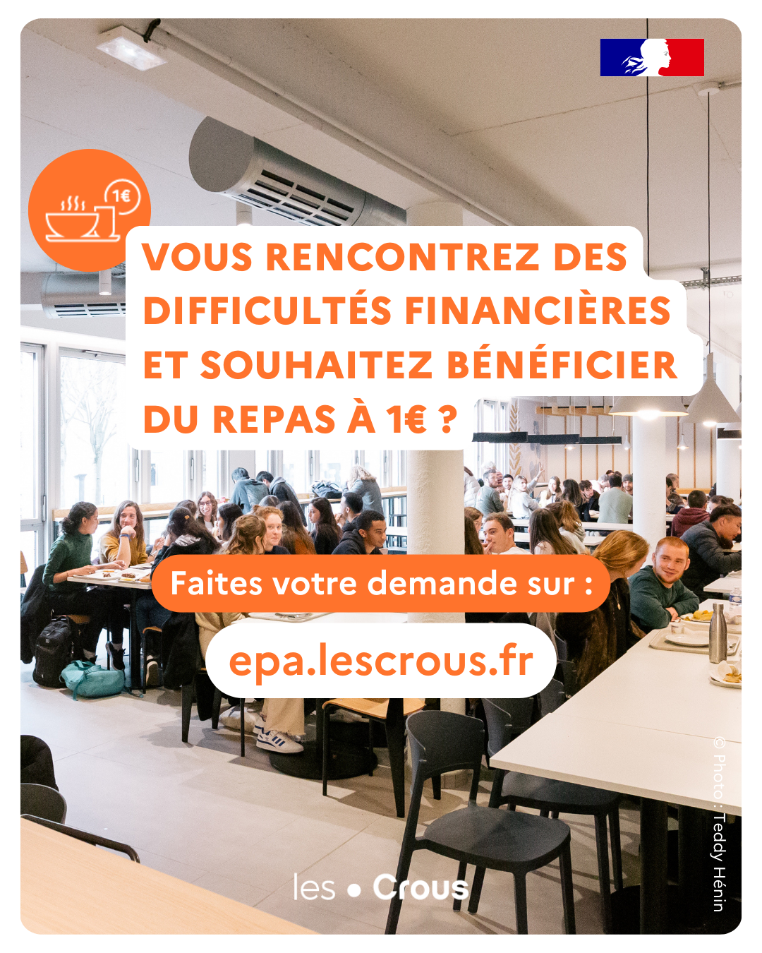 Vous rencontrez des difficultés financières et souhaitez bénéficier du repas à 1 € en restauration universitaire ?